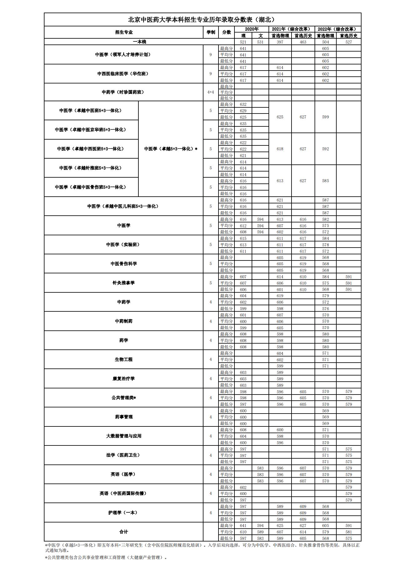 湖北2020~2022年录取分数表