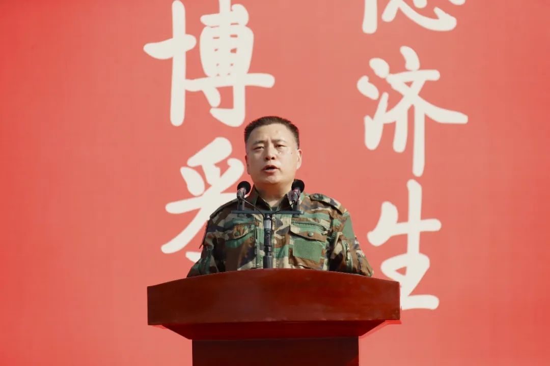 张继旺副书记在动员讲话中对参加军训的全体同学提出三点要求。一是要珍惜军训机会,锤炼意志品质。希望同学们严肃对待军训,始终保持饱满的热情和高昂的斗志,全身心地投入,一丝不苟完成军训各项任务。二是要严守军训纪律,增强集体意识。希望同学们一切行动听指挥,严守纪律,尊重教官,服从管理,培养团队精神、集体意识。三是要勇敢挑战自我,展现青春风采。希望同学们能够坚定信念,咬紧牙关,不断挑战自我,克服困难,努力成为更好的自己。