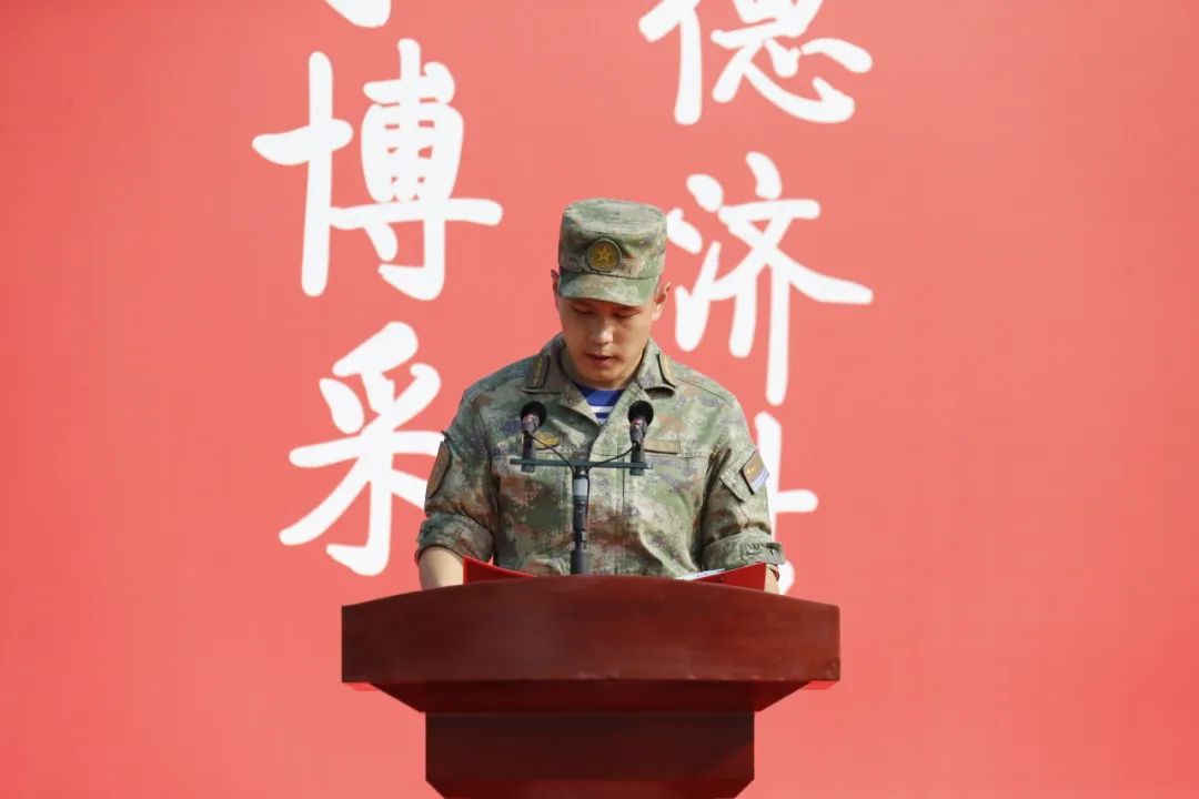 军训团政委范璐宣布北京中医药大学2023级军训团领导任职决定,希望教官与指导员同志们服从命令,履行职责,坚守岗位,扎实工作,圆满完成军训任务。